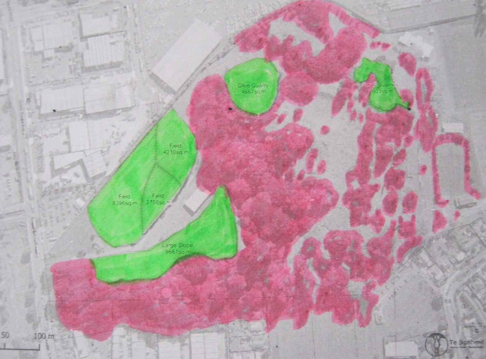 The pink area in the map above shows where the Authority intends to fell up to 3/4 of the entire tree cover. The green area is where the new plantings are going. Note that the circular green patch at the top is where the Authority felled a grove of 100 olive trees in 2019.