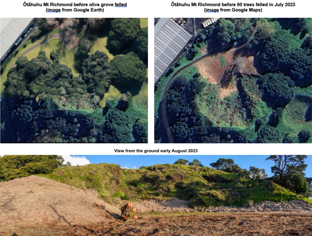 Scroll further down to see some of the 60 or so beautiful trees that Tūpuna Maunga Authority destroyed in July / August 2023. They have stated they are coming back for more. Below that you will see what the Authority did to a huge grove of old olives back in 2018/19.
